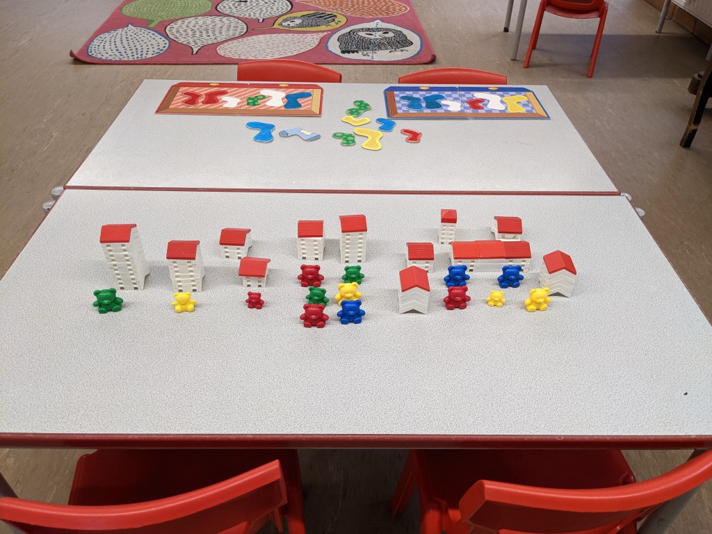 This morning we used different materials to build shelters for our animals. The children explored different materials and the idea of caring for one another. As always each morning children are greeted with a range of activities to stimulate their play with one another.