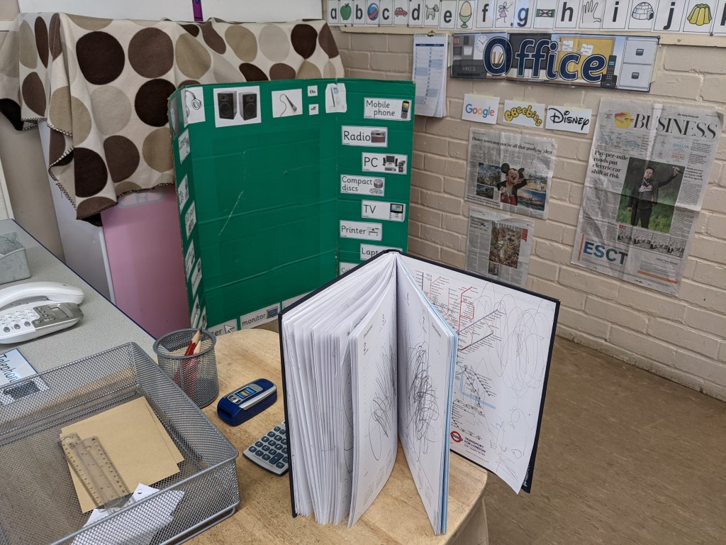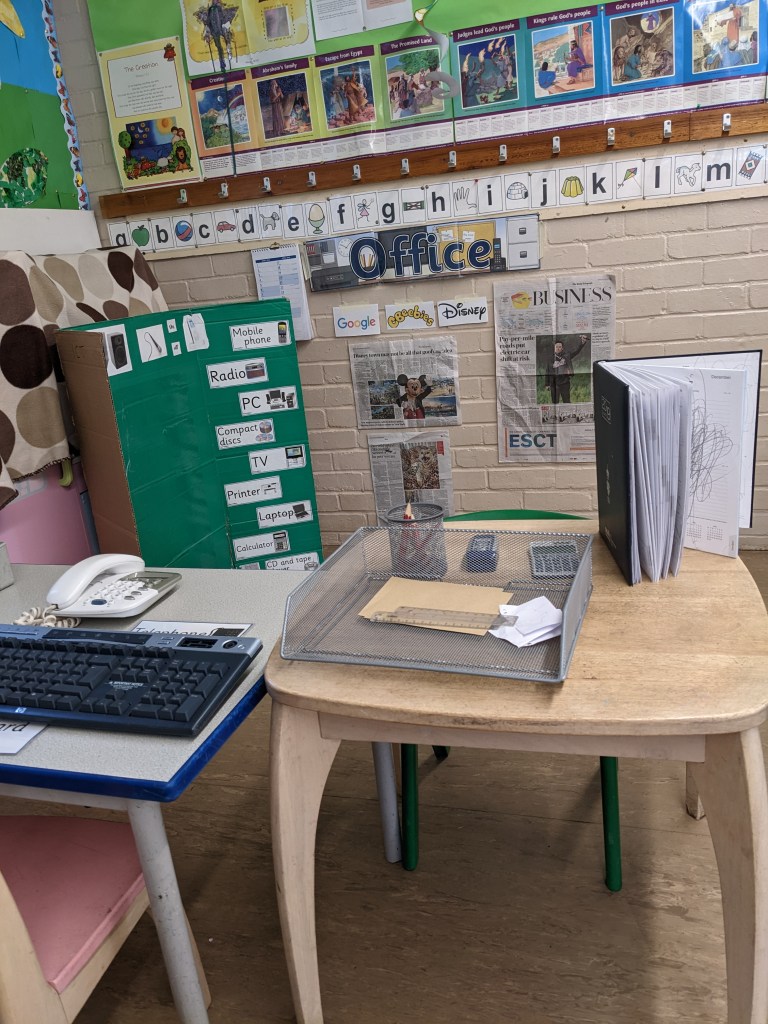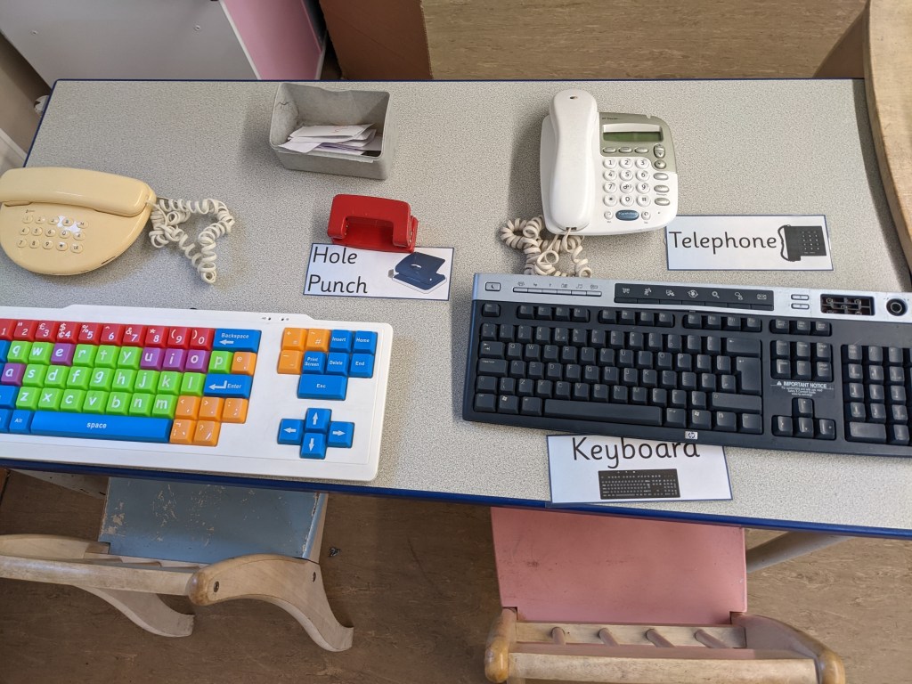 This week we’ve been exploring the idea of “The Office”. Less David Brent and more holepunches and telephones. They have had the opportunity to talk about the technology they’ve met already (who doesn’t love a keyboard!) and the less familiar (its been a while since some of us have seen a CD).