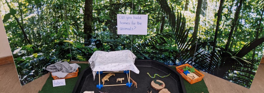 This morning we used different materials to build shelters for our animals. The children explored different materials and the idea of caring for one another. As always each morning children are greeted with a range of activities to stimulate their play with one another.